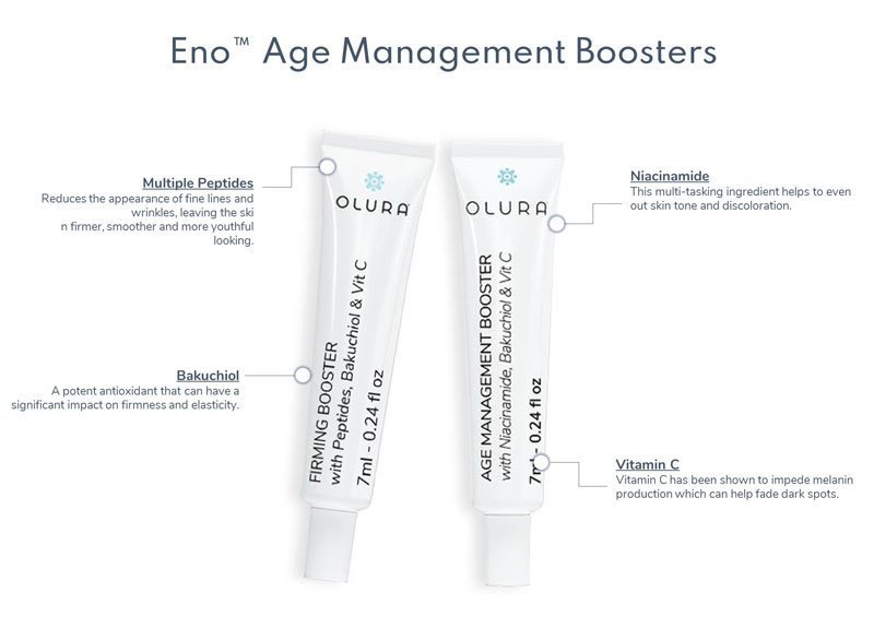 Directions: Pour your boosters into the Olura Treatment Serum bottle and shake for 10-15 seconds to blend thoroughly.