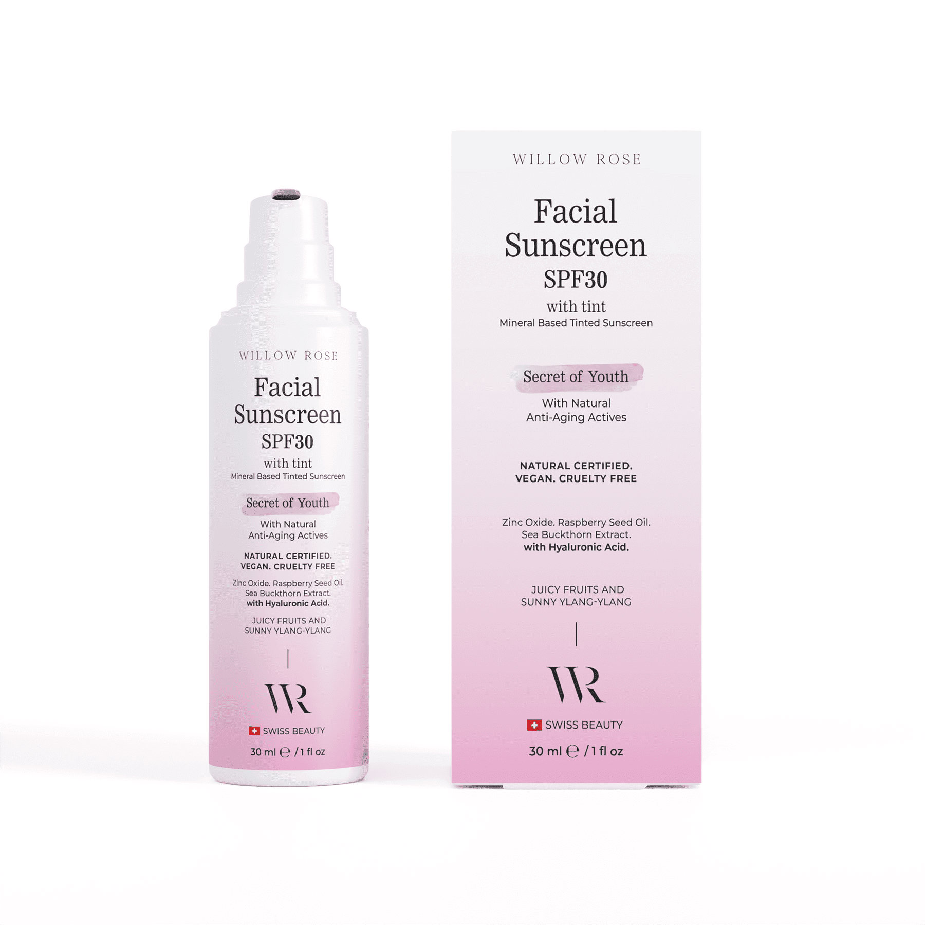 1.Willow Rose Facial Sunscreen is a mineral based tinted sunscreen with SPF30 (high protection).