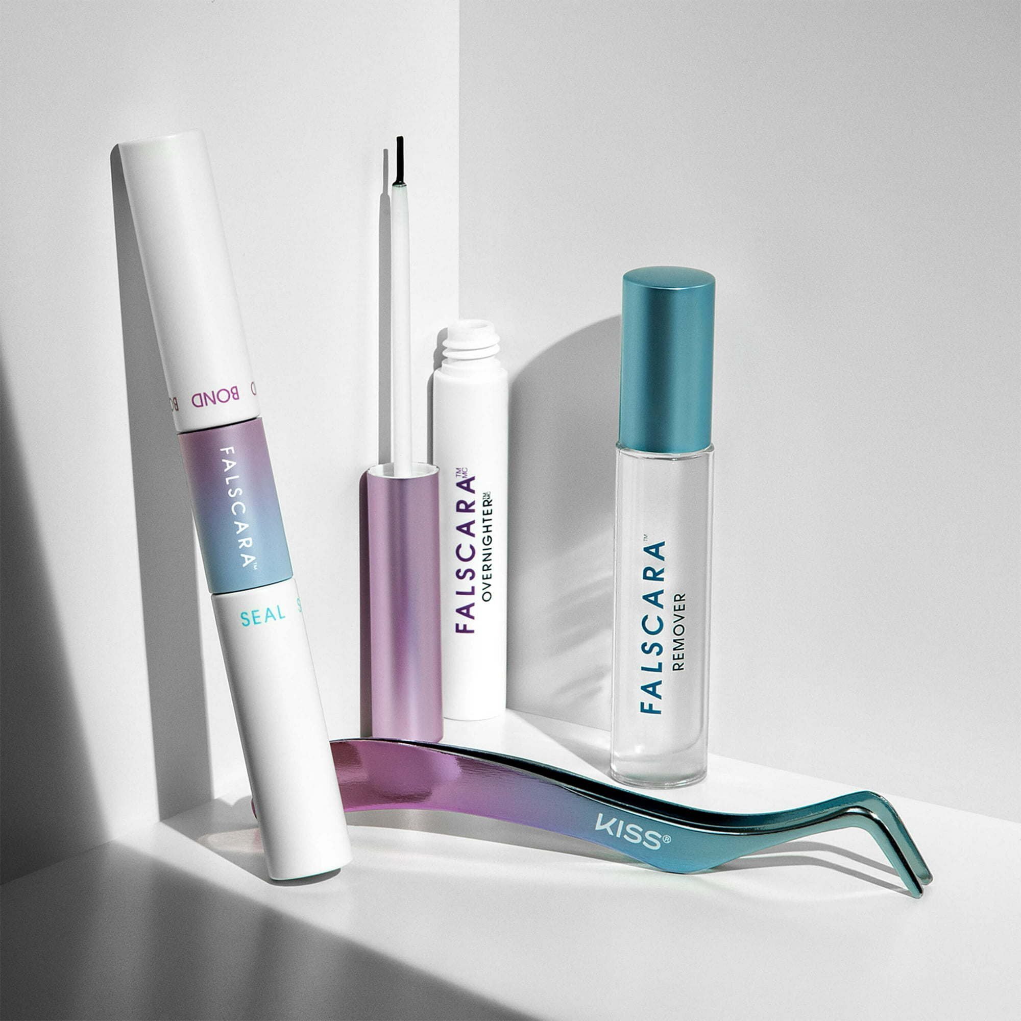 KISS Falscara Special Edition Starter Kit includes all you need to FALSCARA (including a multipack of WISPS) plus OVERNIGHTER, an option that provides extended wear of Falscara WISPS for up to 10 days, just like lash extensions! FALSCARA WISPS are placed under your natural lashes, which is what makes them look so natural. Take your look from casual to all out glam, with WISPS that are buildable and customizable. Value priced kit includes 24 assorted length WISPS; OVERNIGHTER Long Wear Sealer 5.2 G (0.18 OZ.); BOND & SEAL to prep lashes and hold WISPS, 4.5 g (0.15 oz.) each; APPLICATOR, & REMOVER